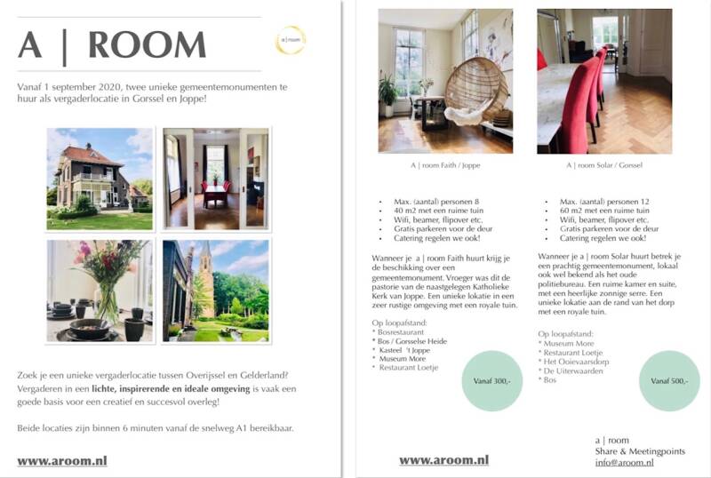 Wil je a | room boeken? Leuk! Je kunt ons bellen op 06 10890446 of mailen naar info@aroom.nl of dit formulier invullen!